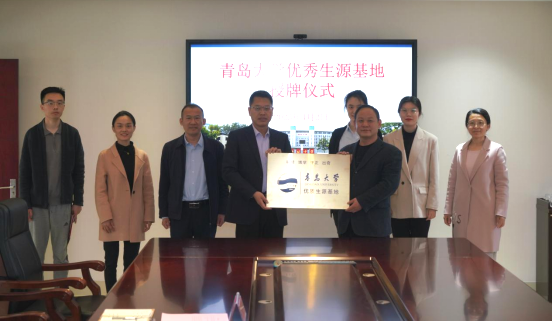 张磊与潍坊中学党委书记、校长赵洪东签署“青岛大学优秀生源基地共建协议书”,并进行了授牌。