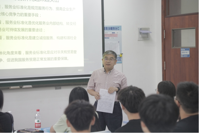 孙慧波老师的《服务标准化》课程后,与任课教师和同学进行了亲切交流。