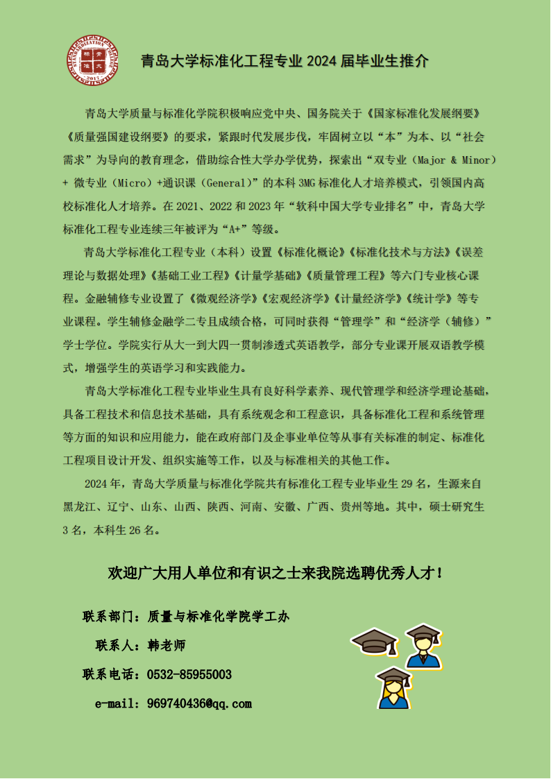 葵司 标准化工程专业2024届毕业生推介