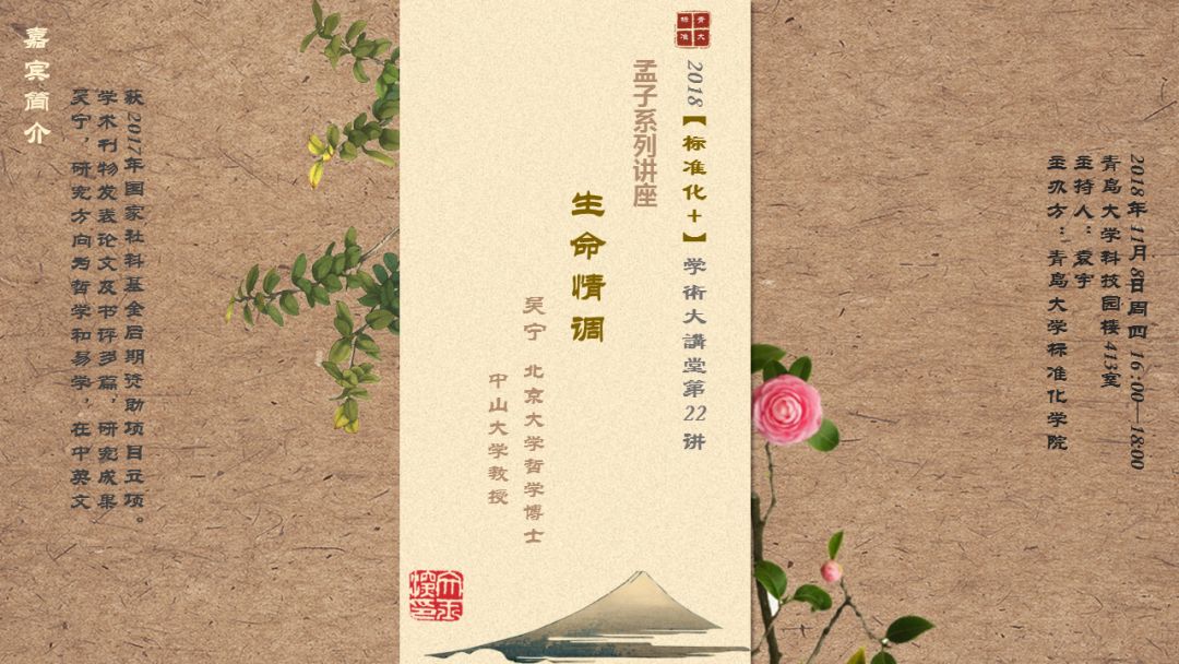 主讲内容:2018【标准化+】学術大講堂第22 讲 孟子系列讲座——生命情调
