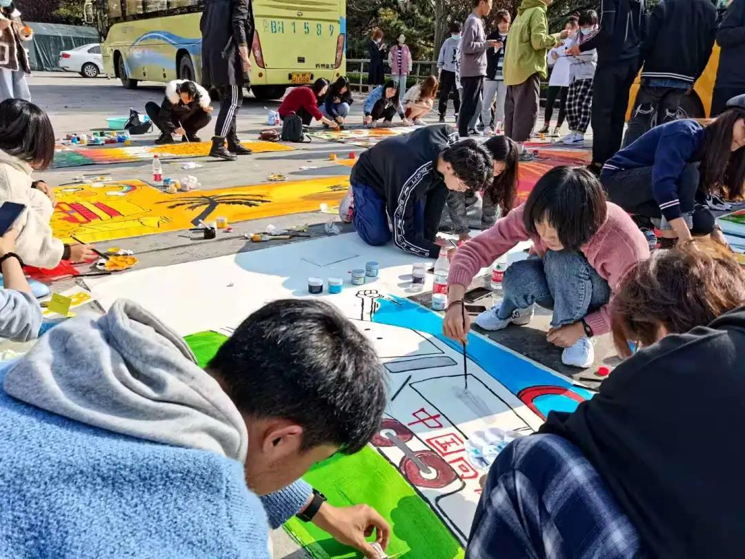 2020年11月15日清晨,太阳懒懒地把阳光撒下,撒在了今日格外有生气的青岛海月广场上。由校团委主办,各学院代表队参加的彩绘活动在这里拉开帷幕。