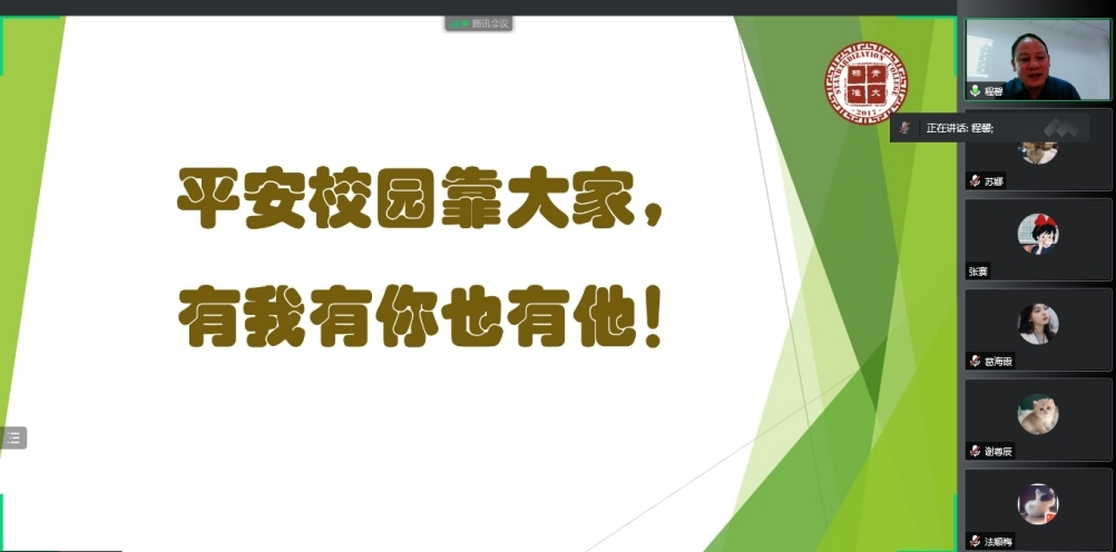 张磊副书记详细介绍了校园疫情防控的相关内容,从人身安全、交通安全、消防安全等板块对新生进行了安全教育。