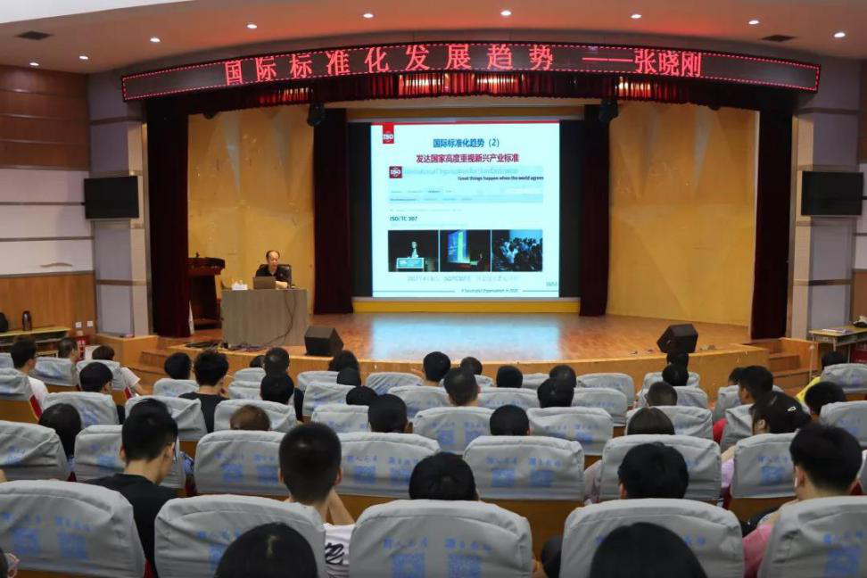 张晓刚主席首先简要介绍了标准化的起源和发展,并就国际上公认的三大标准化组织ISO、IEC和ITU做了讲解,使刚入校2019级新生对于标准化有了初步的了解,也让其他同学对于国际标准化活动有了更深的理解。