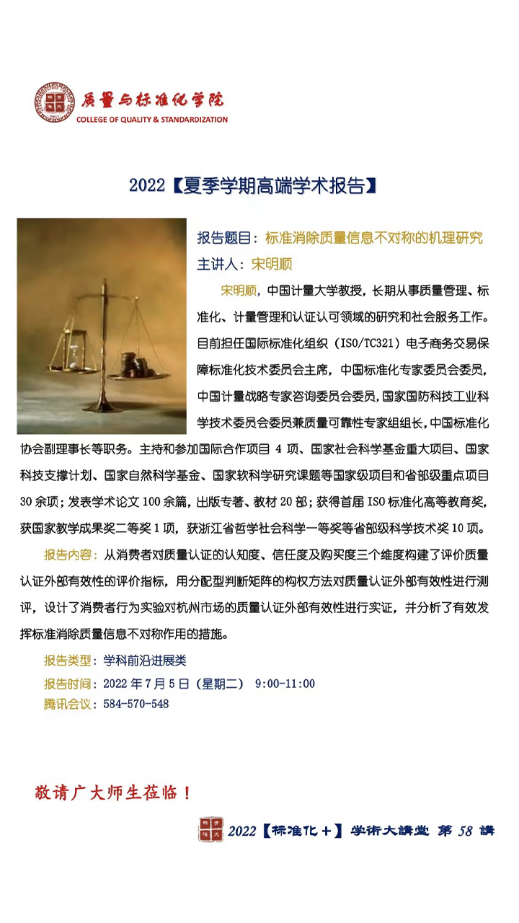 标准化学院”(现更名为“质量与标准化学院”),聘请原国际标准化组织(ISO)主席张晓刚为名誉院长,同年9月开始招收“标准化工程”专业本科生。