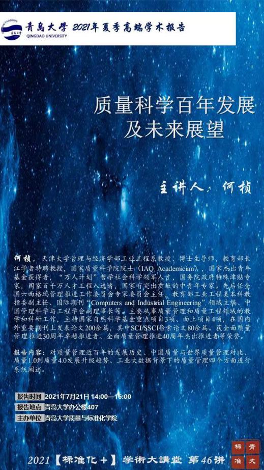 2021年7月,承办青岛国际标准化大会“标准化人才培养与能力建设暨‘一带一路’标准化教育与研究合作论坛”