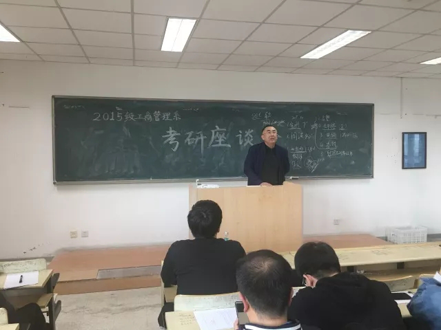 马伟主任代表工商管理系全体老师表示愿为大家考研提供最大的服务与支持。为贯彻实施“为大家服好务”的理念,马主任指出:一是建立“考研导师制”,通过老师同学们双向选择,实现点对点服务;二是设立“考研门诊”,通过建立微信群的方式,将老师们以及考过研、要考研的同学们加进来实现有问题第一时间解决、有资料第一时间分享。三是邀请外语学院老师为大家的考研英语助力,一对一为大家服务。同时提出“三定”的理念:定目标、定计划、定行动。