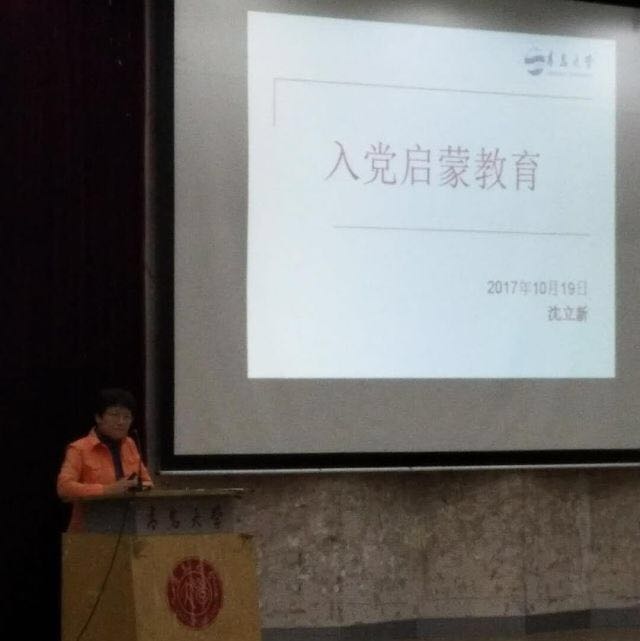 学校为了让新生正确看待入党问题,树立正确的入党动机,详细了解的入党流程,争取做合格的党员,特邀沈立新老师举行此次讲座,展开了扎实的党政教育工作。