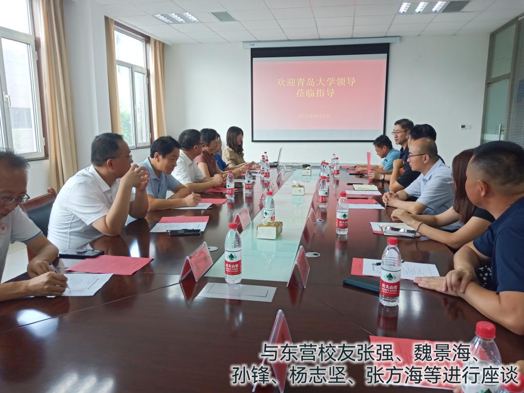 东营研究院、东营北晟股份有限公司等。座谈会上,校友们对母校老师表示欢迎,并分别介绍了潍坊、邹平、滨州、东营地区的发展以及校友所在企业的基本情况。校友代表畅谈了自己在母校的求学往事,表达了对母校和老师的感激之情,汇报了对校友工作的思考和打算。校友们纷纷表示,要继续传承和弘扬青大精神,做好本职工作,为母校增光添彩。