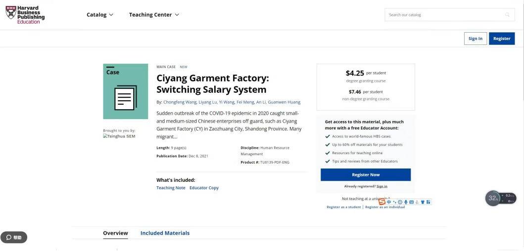 会计学系教授、硕士生导师王崇锋老师与清华大学经济管理学院王毅教授、清华大学经济管理学院中国工商管理案例中心研究员孟菲老师合作的教学案例《Ciyang Garment Factory:Switching Salary System》被哈佛案例库(Harvard Business Publishing)正式收录,成为葵司