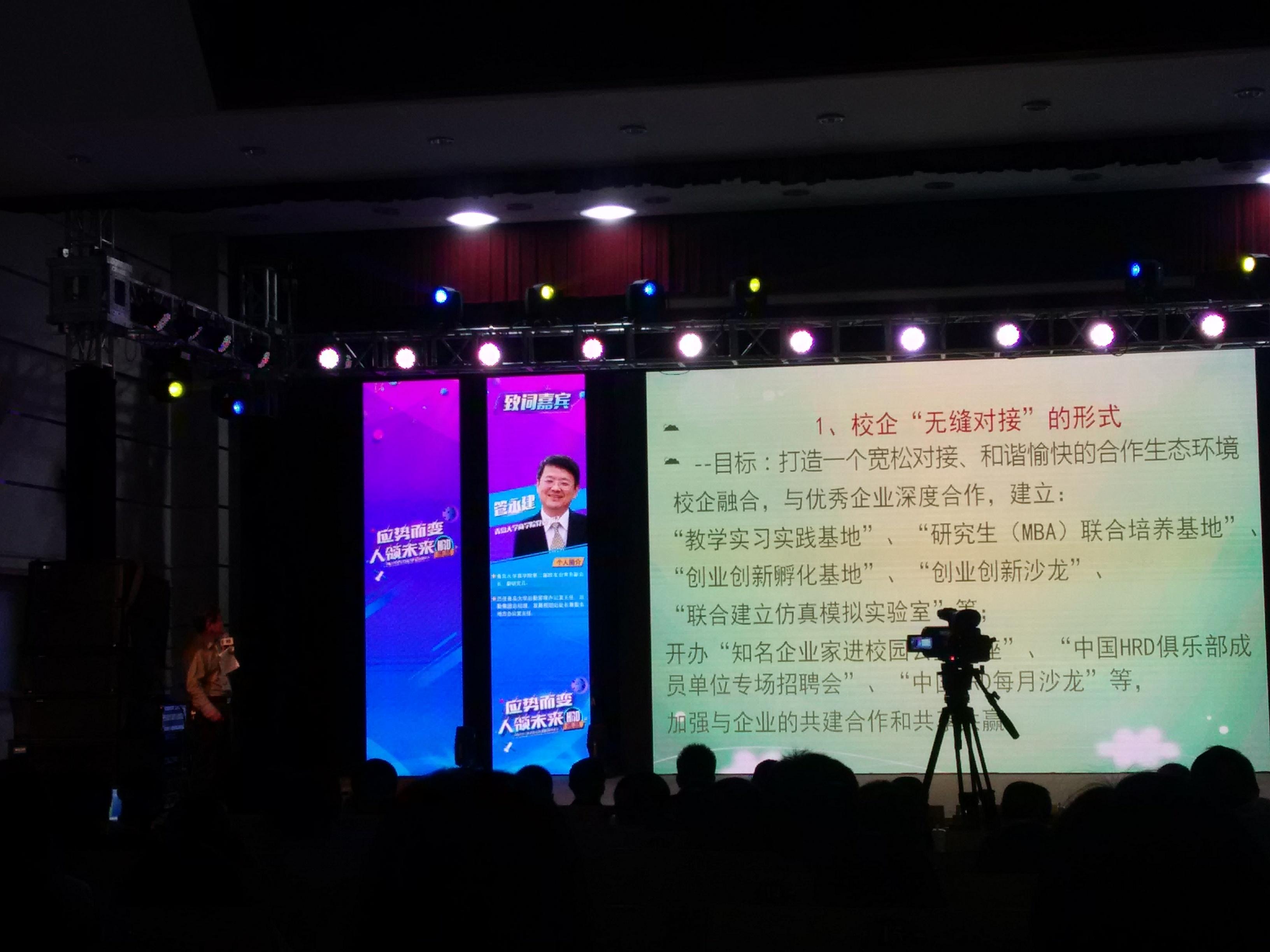 的情况,就校企无缝对接阐述了自己的观点——开门办学、开门办商科教育,并提出了建立人力资源管理创新班的建议。