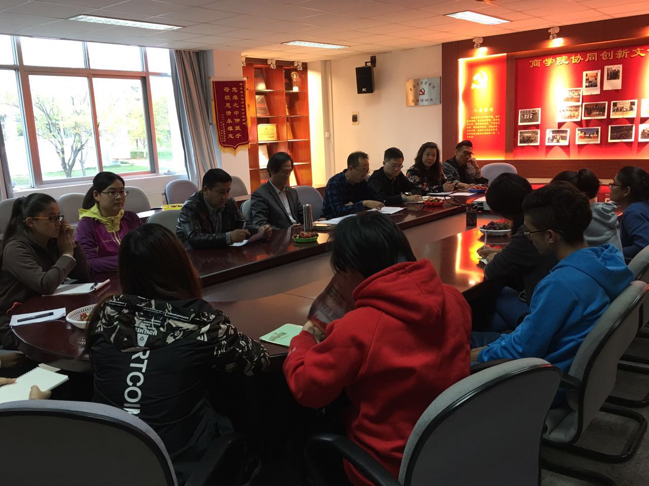 大家庭,感受商院文化的熏陶,加强与其他同学的沟通与交流,和睦相处,互相学习,共同提高,在各方面创造优异成绩。他叮嘱同学们常怀感恩之心,保持坚定的理想信念,感谢党和国家的政策,感激父母,感恩学校,明辨是非,诚实友善,奋力践行社会主义核心价值观,积极参加社会实践活动,努力传承发扬民族文化。陈书记还要求学工办和少数民族学生班主任针对少数民族学生学习特点、风俗习惯,帮助解决他们遇到的各种问题,为他们提供良好的成长环境和学习氛围。