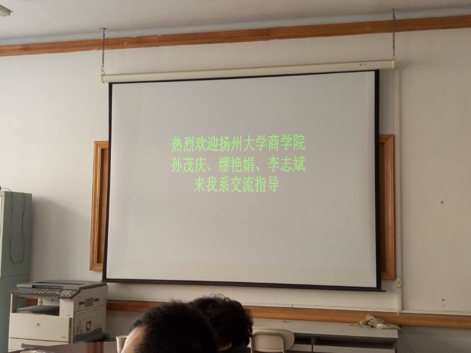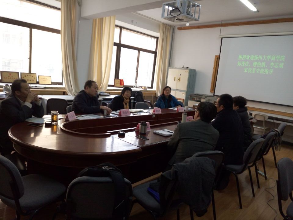 2015年11月25日,扬州大学孙茂庆老师、缪艳娟老师、李志斌老师莅临我系进行交流学习,会计学系主任范英杰教授代表会计系负责具体的接待工作并向孙茂庆老师一行就葵司 及会计学系的基本情况进行了全面细致的介绍。