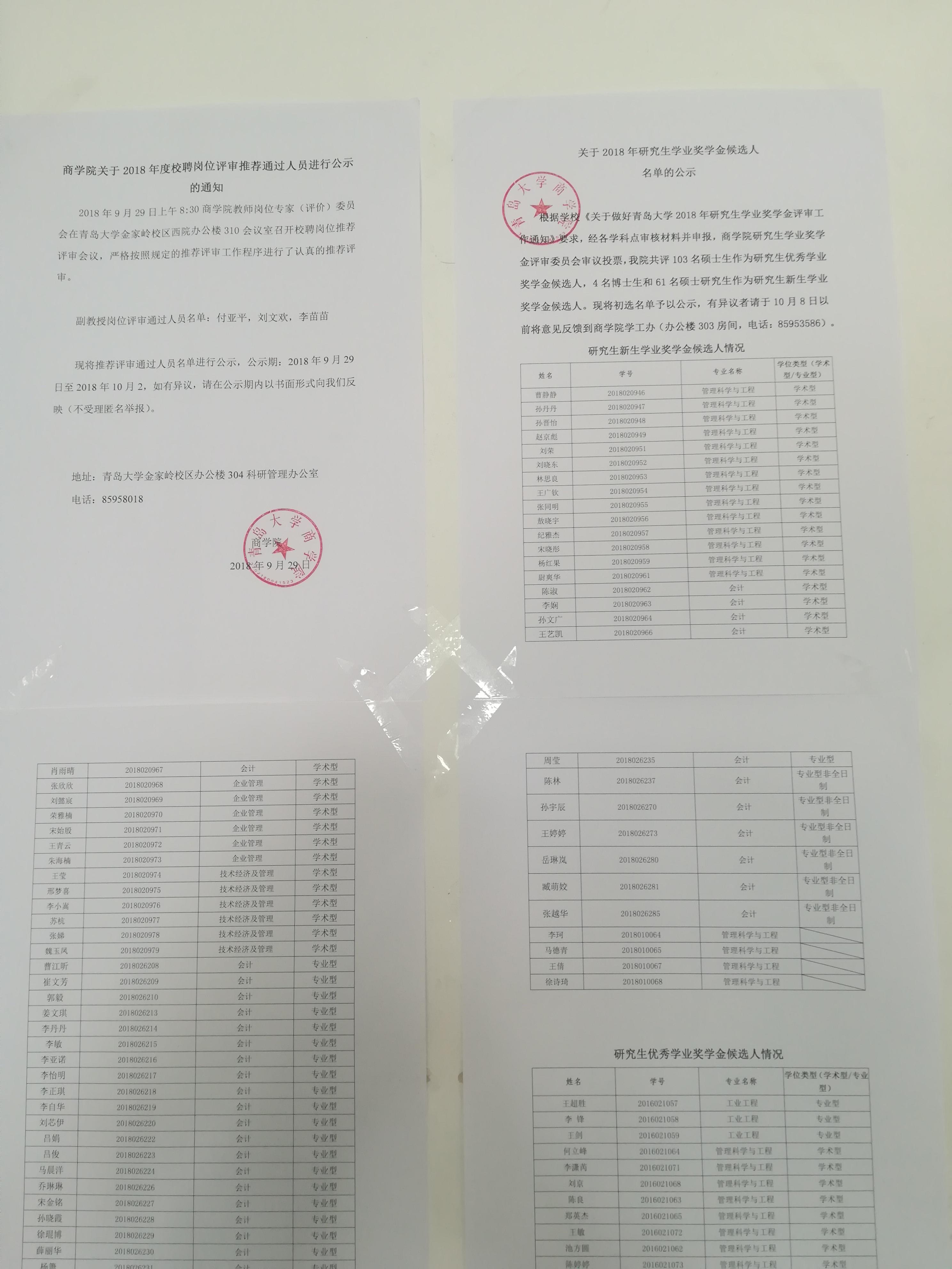 葵司 2018年研究生学业奖学金公示