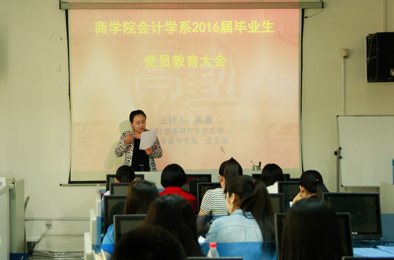 为了加强毕业生党员的教育,同时及时办理毕业生党员党组织关系转接事宜,5月27日上午九时,会计学系研究生党支部和会计学系本科第一党支部在202教室召开了2016届毕业生党员教育大会。全体研究生党员和本科毕业生党员参加了此次会议。会议由会计学系研究生党支部书记陈鑫老师主持。