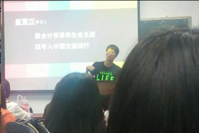 最后一位就是崔霄汉学长,曾担任会计学系学生会主席,被中国交通银行录取。他建议:如果考虑好去银行工作,可以在大三暑假去实习体验一下银行的工作,有在银行实习的机会在面试时会多一份把握。关于简历的投递,崔学长说网申要多投简历,简历要把优点全部写上,以增加成功率。关于面试,要记住状态很重要!不要太紧张,眼睛要注视考官,自然放松,保持良好的心态,很多同学因为初面太紧张而丧失了笔试的机会。笔试不算太难,积极备考,会有好成绩的。发挥出自己应有的水平就好。
