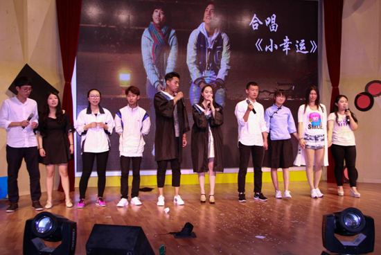 舞蹈过后,是由14级同学杜爽、15级丁晓荔带来的相声《大学那些事儿》。两位虽说年纪不大,但讲起相声来还真是有板有眼,逗哏跟捧哏都是满满的笑点啊;最后,大四各班代表为大家带来歌曲串烧。台上的人唱着一首首的歌,台下的人回忆着一件件往事,岁月如歌,唱的完旋律,唱不尽回忆。