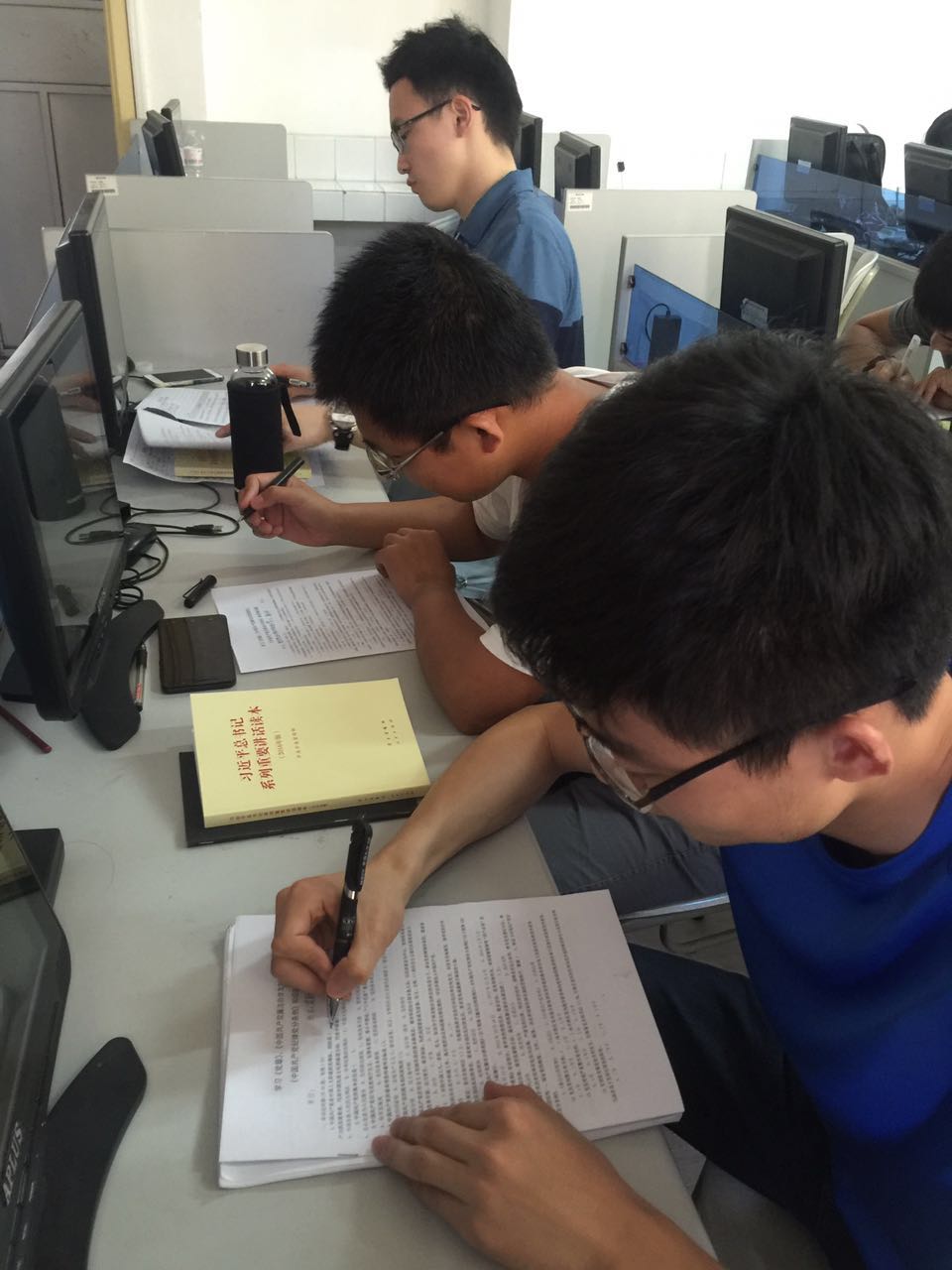 首先,为加强会计学系研究生党支部的组织建设,支部成员民主推选了15级会计学硕吴新祥同学为支部组织委员,15级会计专硕詹晗同学为支部宣传委员,两位同学均表示会认真履行职责,同心协力开展做好支部各项工作。随后,陈鑫老师为每一位党员颁发了《习近平总书记系列重要讲话读本》,并带领党员们学习了其中的重点章节。同时,号召全体党员要严于律己,从点滴小事做起,研究生更应该端正学习态度,充分发挥党员的模范带头作用,做一名合格党员。陈鑫老师还向支部成员详细介绍了入党的各项细则,对正式党员定期递交思想汇报做了统一部署。最后,组织全体研究生党员进行学习《党章》、《中国共产党廉洁自律准则》、《中国共产党纪律处分条例》知识测试,大家认真答题,在答题中巩固和深化党章党规的学习。