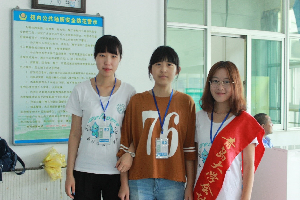 我系的迎新工作也受到新生和家长的一致好评。据某家长介绍,他们从一下车就看到了我们系的迎新标牌,并由我系迎新人员一路带领找到报道大厅,办完手续后又有人领路找到了宿舍,整个报道过程丝毫没费周折,甚至还有同学主动拎行李,该家长不停的在向迎新人员道谢;还有些新生是一路通过我们的指示牌找到报道大厅,报道完家长不住的感叹:“你们的指示牌贴的可真细致啊!”看到家长脸上满意的笑容,我们也由衷的感到欣慰。