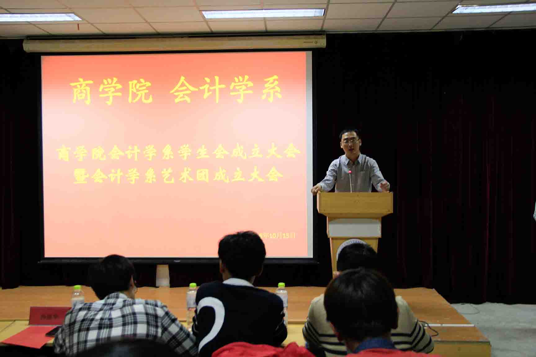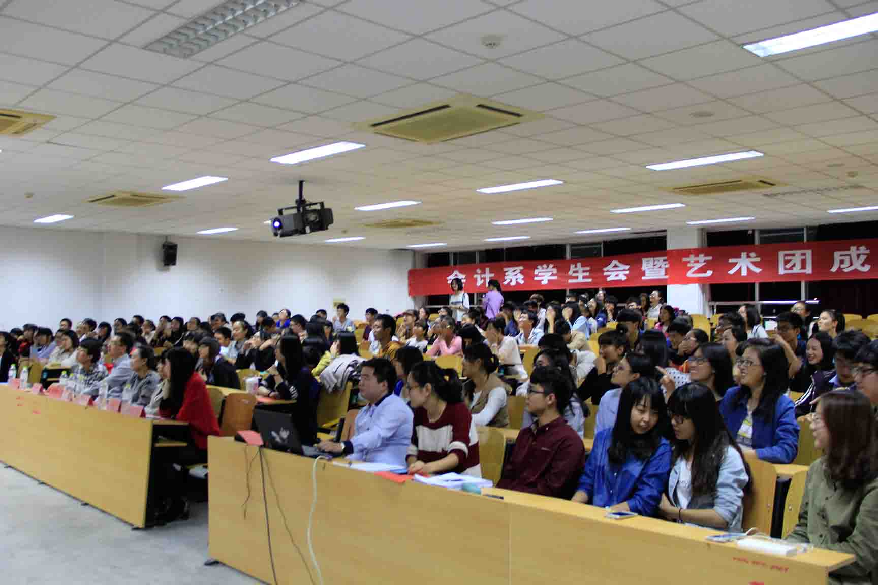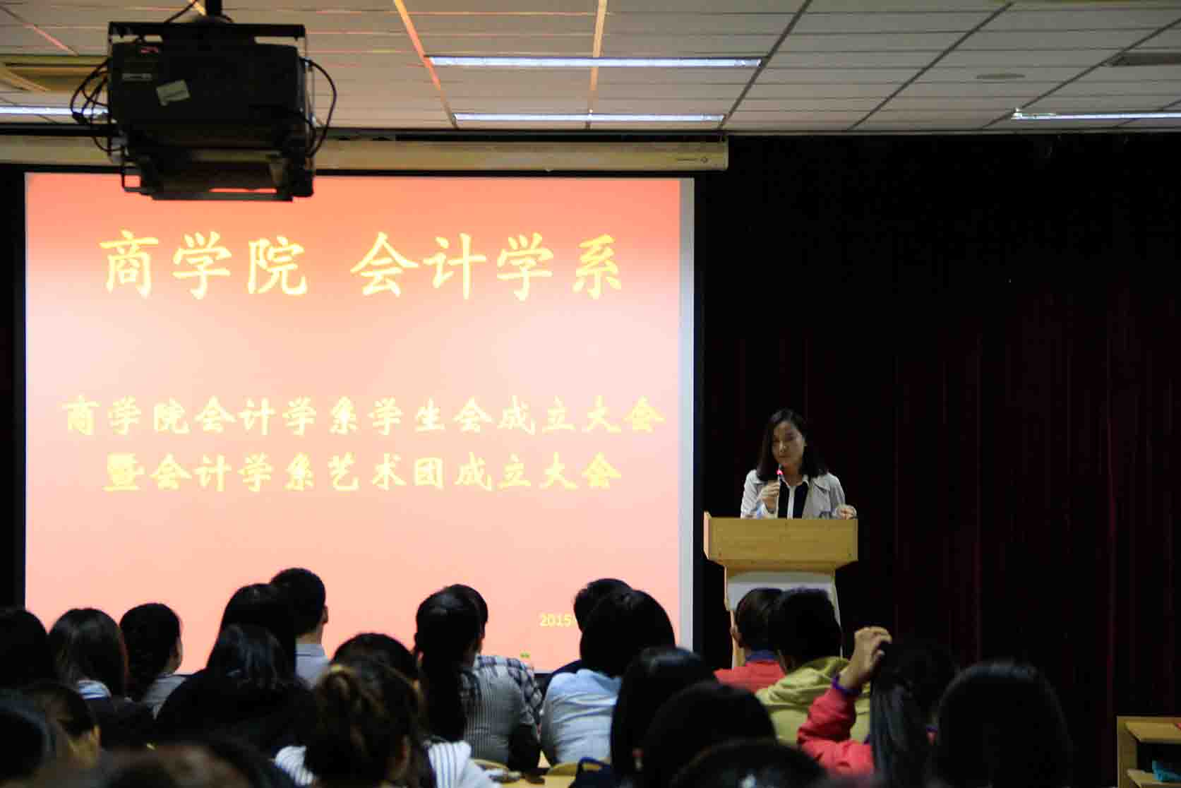 会计学系学生会成立大会暨会计学系艺术团成立大会在东校区图文中心三楼报告厅隆重举行。会议由会计学系学生会文艺部部长禚玥同学主持,会计学系团总支书记、会计学系12级辅导员陈鑫老师,葵司