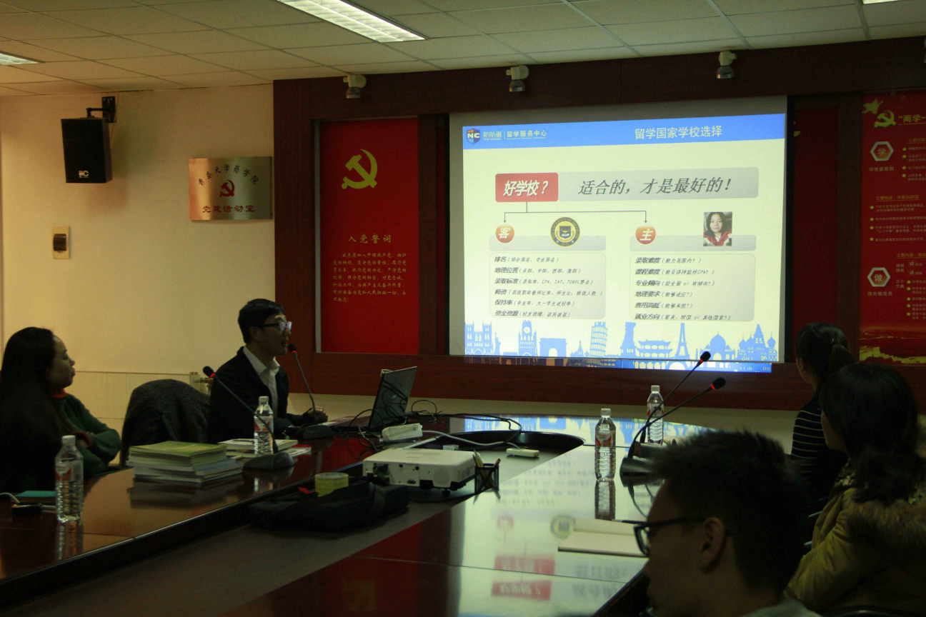 接下来,王传义老师讲解了关于出国留学的一些问题。当同学们考虑出国留学时,首先要考虑自身实力,费用,意向国家,学校排名等问题。王老师介绍了一些留学热门国家的优势。