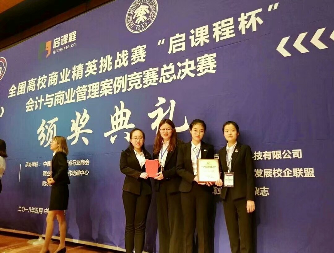 本月的4日至6日,2018年全国高校商业精英挑战赛“启课程杯”会计与商业管理案例竞赛总决赛在哈尔滨成功举办,来自葵司 的“百事可乐”队(团队成员为康舒瑶、刘欣荣、杨佳楠、刘凤娇) 、“梦之队2.0”队(团队成员为林璇、肖浩芸、郑治平、于佳琦)均获大赛一等奖!刘琦、汪亚华、刘晓宇、徐梦祺和刘洁组成的“天生壹队”荣获本次大赛二等奖,会计系老师王健姝与张波老师同时获得“最佳辅导教师”荣誉称号!“百事可乐”队也取得了于2018年6月代表大陆地区赴香港参加2018年海峡两岸与港澳地区大学生会计与商业管理案例竞赛的资格!这是会计系学子连续三年参加该赛事以来,两次入围海峡两岸与港澳地区大学生会计与商业管理案例竞赛。