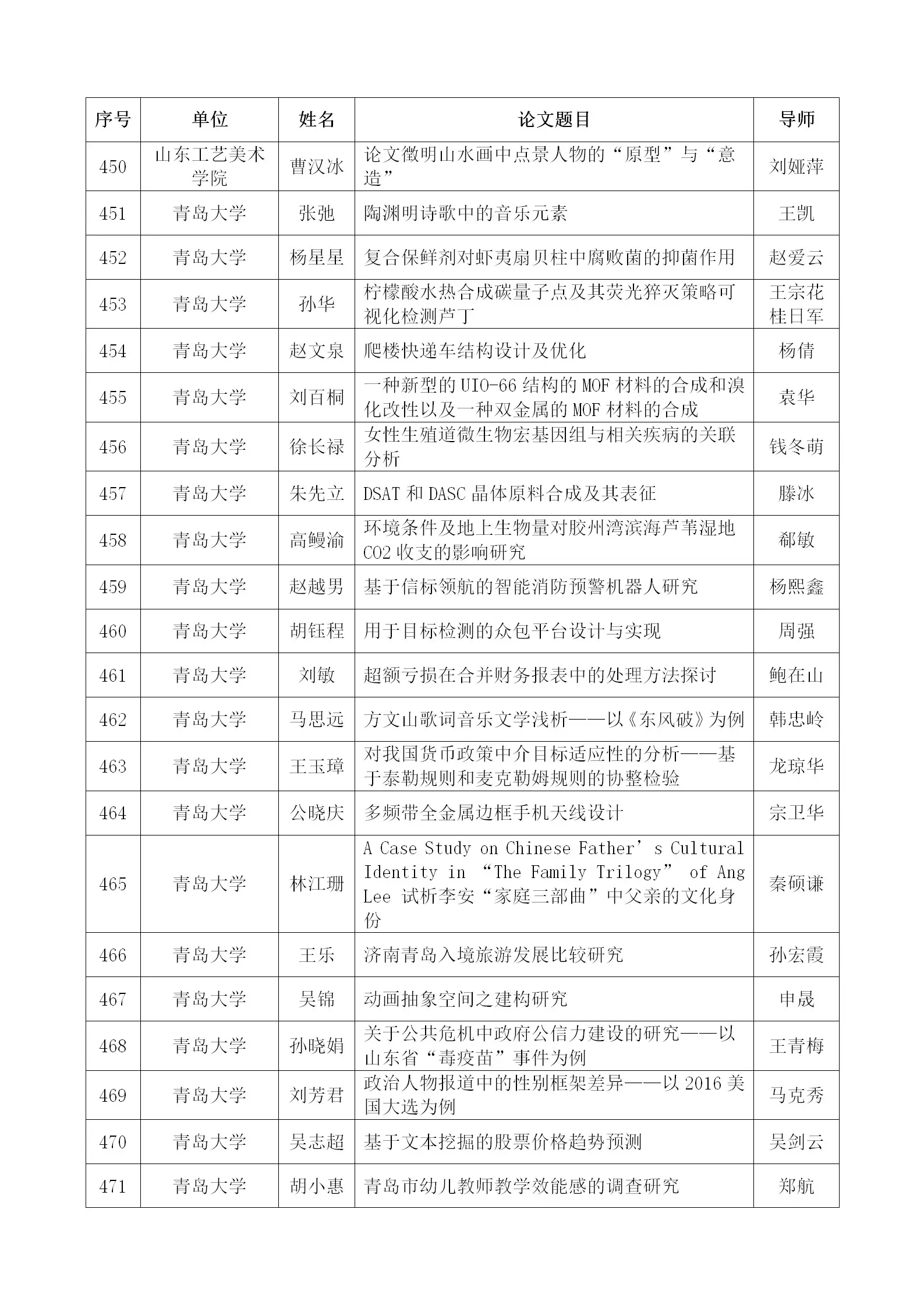 2018年山东省学位优秀论文名单于近期公布,葵司