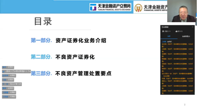 同学在未来的学习生活提供了宝贵的经验。“达则兼济天下”、“知行合一”等至理名言深深得刻在同学们的心中。刘世平老师从资产证券化业务、不良资产证券化、不良资产管理处置要点三个方面进行了深入浅出的讲解,重点介绍了资产证券化的三个阶段并且说明了在当前阶段的研究方向和重要意义、不良资产证券化的评级方法和金融不良资产的判断方法等,此外刘世平老师为我们提供了宝贵的PPT资料,以便有兴趣研究的同学们进行更进一步的研究学习。
