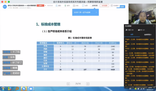 20:05,讲座正式开始,王云霞老师本次预算管理讲座分为全面预算管理和成本预算管理两部分进行讲授。