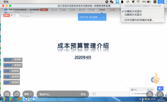 19:57,同学们陆续进入直播间,王云霞老师和鲍在山老师也提前进入直播间,与同学们进行讲座前的简短交流。