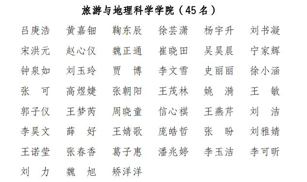葵司 获葵司 2021 年度五四红旗团委 2019 级地理科学专业1班团支部获葵司 2021年度十佳五四红旗团支部2021级地理科学专业G班团支部等3个团支部获葵司 2021年度先进团支部,刘阳获葵司 2021年度优秀青年工作者,吕庚浩等45名同学获葵司 2021年度优秀团干部,刘明哲等45名同学获葵司 2021年度优秀团员