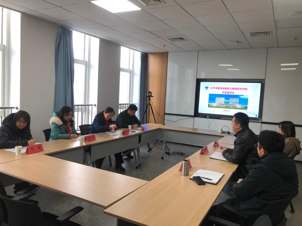 2022年2月21日上午,学校合作发展处张燕处长一行4人到学院指导服务地方、校友工作,学院肖建红院长、于苗副书记、赵玉宗院长助理参加。双方围绕文旅学科深化与地方政府、企业、社会团体合作,协调推进服务青岛合作项目等内容进行了广泛交流。
