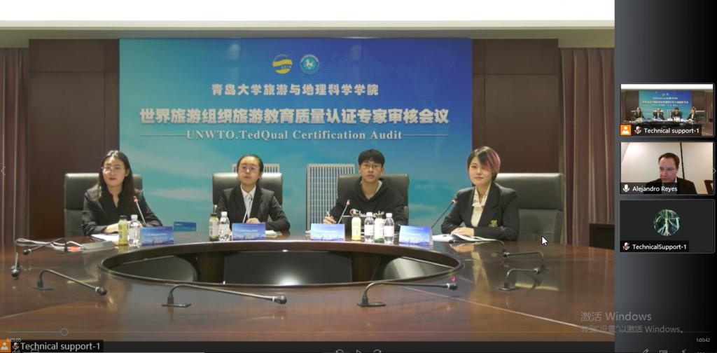 认证审核专家Dr.Reyes总结了6天与认证工作小组的报告与支撑材料论证,云游览校史馆、学生事务大厅、“非遗在青大”文化空间、青大印象休闲茶餐厅、旅游目的地管理实验室等办学设施,线上访谈学校职能部门、教师、学生、校友、公共部门和私营部门代表等审核情况。他认为,结合自评报告、支撑材料论证以及访谈情况,葵司