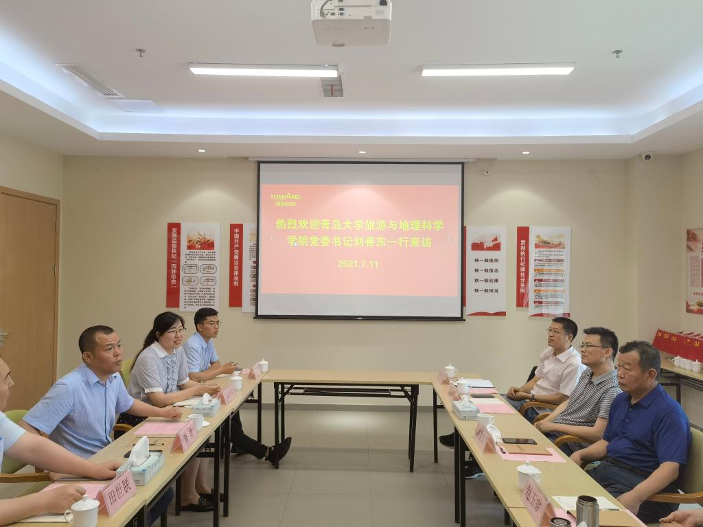 三、积极推进康养旅游产学研融合。4月14日,鲁商集团鲁商福瑞达健康投资有限公司董事长高峻、副总经理朱巧玲和运营部经理白晓燕、吴启斌到访旅游与地理科学学院,对接康养旅游相关领域合作事宜。旅游与地理科学学院耿庆汇副院长、郭永锐教授、潘永涛副教授、金玉实博士和徐翠蓉博士参加了合作对接会。本次合作对接会,双方在康养旅游领域建立长期合作机制达成清晰的意向和共识,并成立了葵司