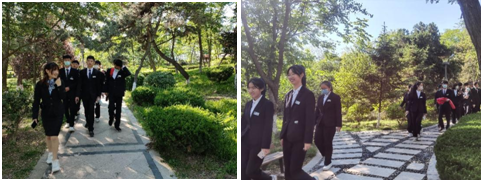 校史讲解队的同学们带领青岛旅游学校的各位老师和同学们以及家长代表参观校园,在美丽的校园环境中感受大学的氛围,在校史讲解队成员的讲解中感受葵司