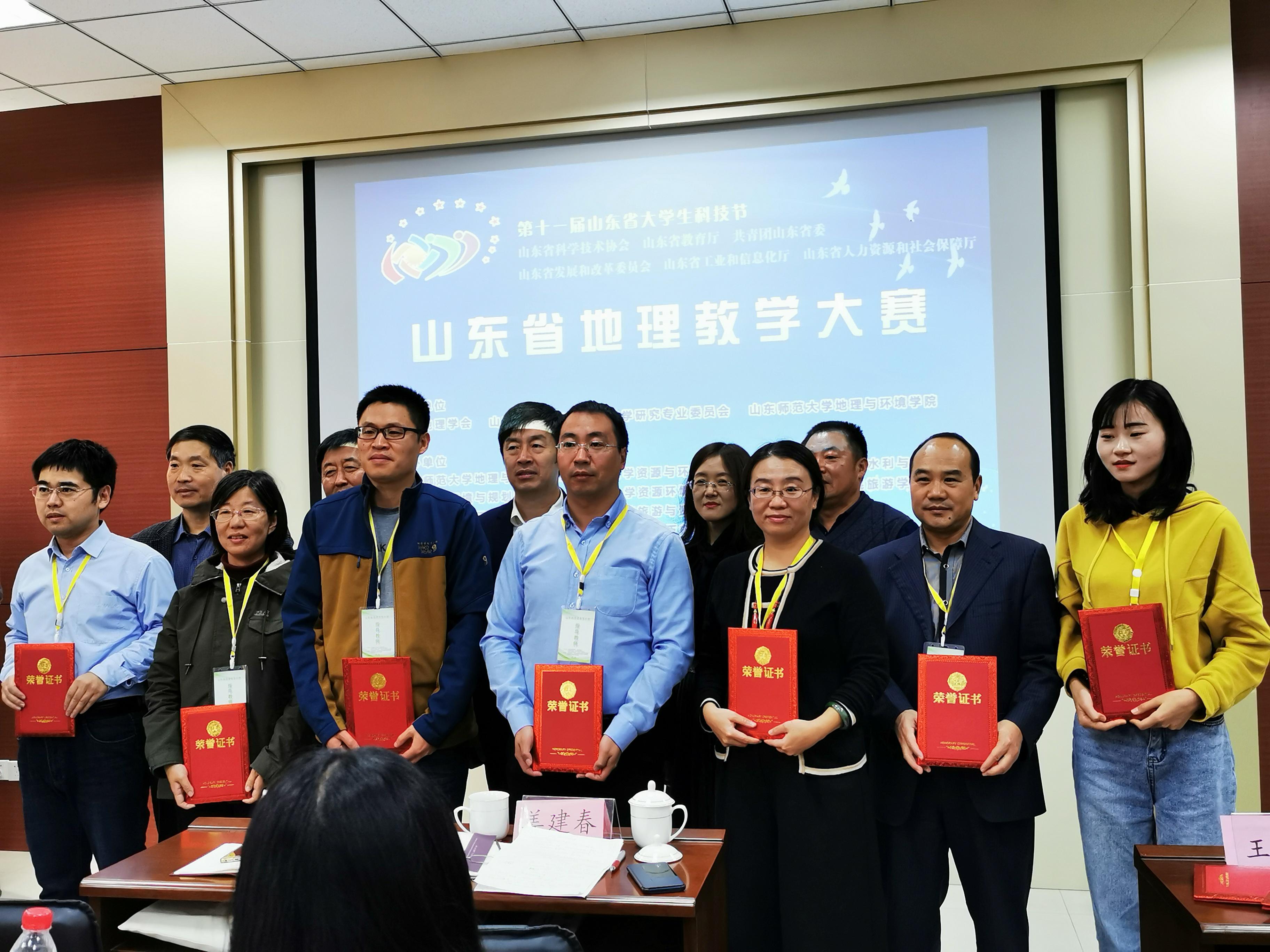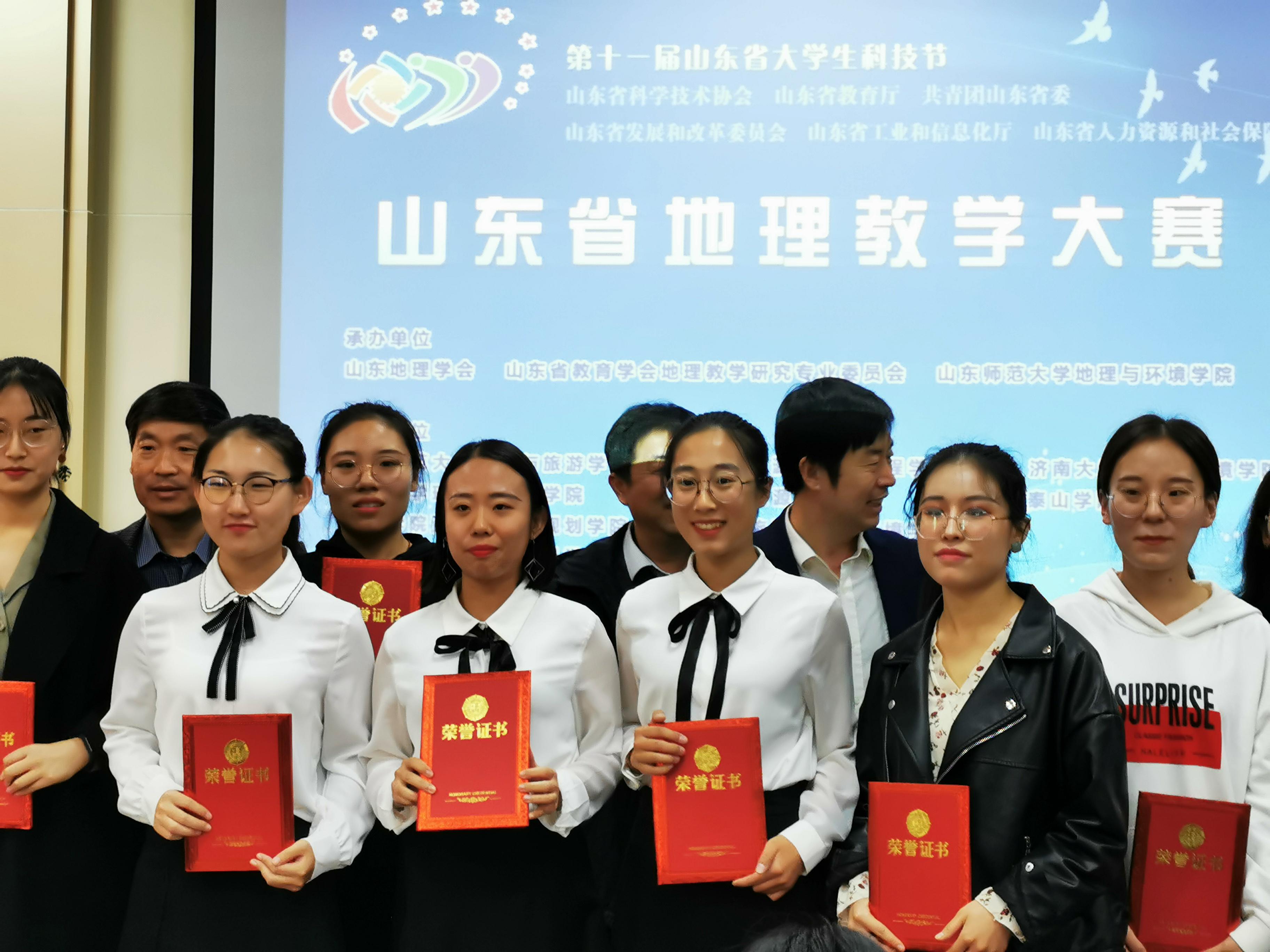 2019年10月25-27日在济南山东师范大学举办的第十一届山东省大学生科技节山东省地理教学大赛圆满落幕。旅游与地理科学学院表现出色,共获得特等奖1项,一等奖3项,二等奖1项的好成绩。孙宏霞,徐雪获优秀指导教师称号。