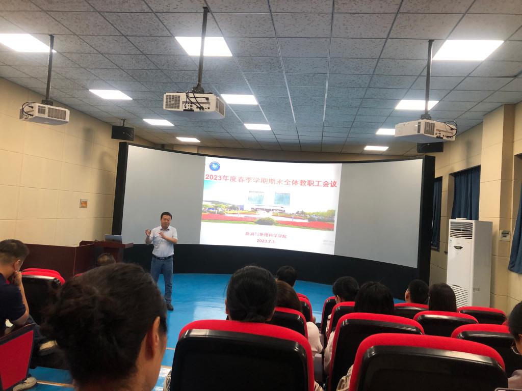 7月3日下午,旅游与地理科学学院在静思楼数字旅游实验室召开2023年度春季学期期末全体教职工会议,总结2023年度上半年工作并部署暑期重点工作。