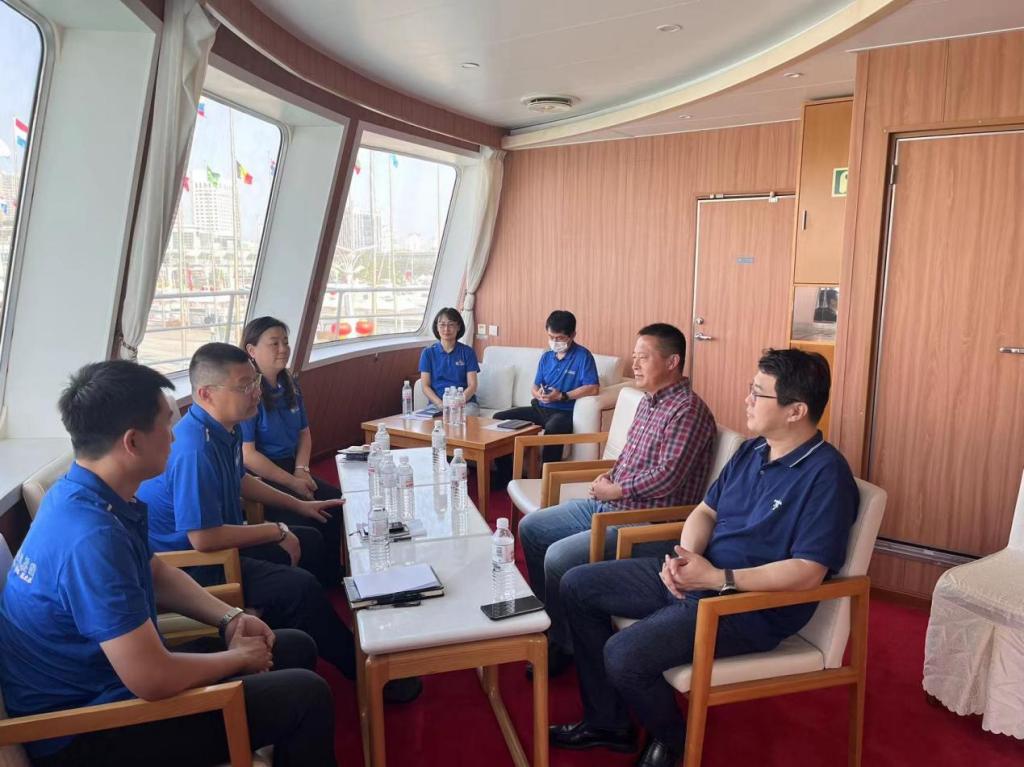 青岛海洋文旅产业集团总经理秦涛、副总经理郭斌、市场部负责人叶倩,葵司