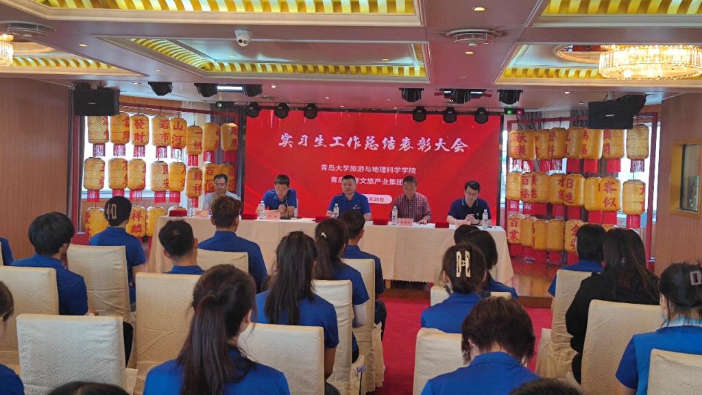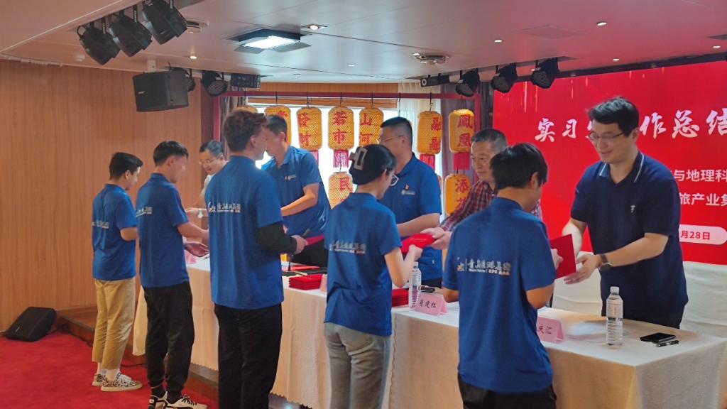 旅游与地理科学学院2021级学生的“实习工作总结表彰大会”,在“蓝海珍珠”号游船一楼大厅召开。
