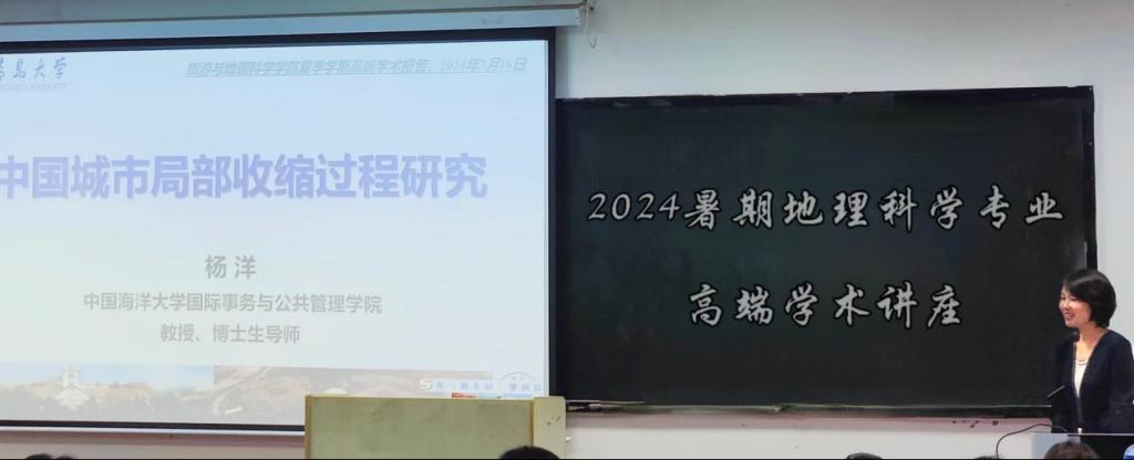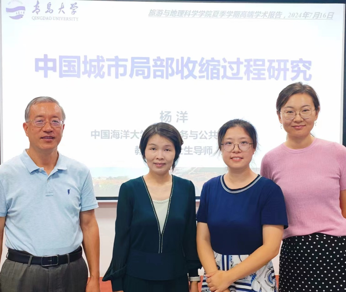 旅游与地理科学学院邀请中国海洋大学国际事务与公共管理学院杨洋教授为学院师生做题为“中国城市局部收缩过程研究”学术报告。本次报告在浮山校区博学楼102教室举行,由地理与城乡规划系主任赵建军老师主持,地理与城乡规划系赵建军老师、鞠洪润老师、曹颖慧老师及2021级、2022级、2023级地理科学专业全体同学参与讲座。