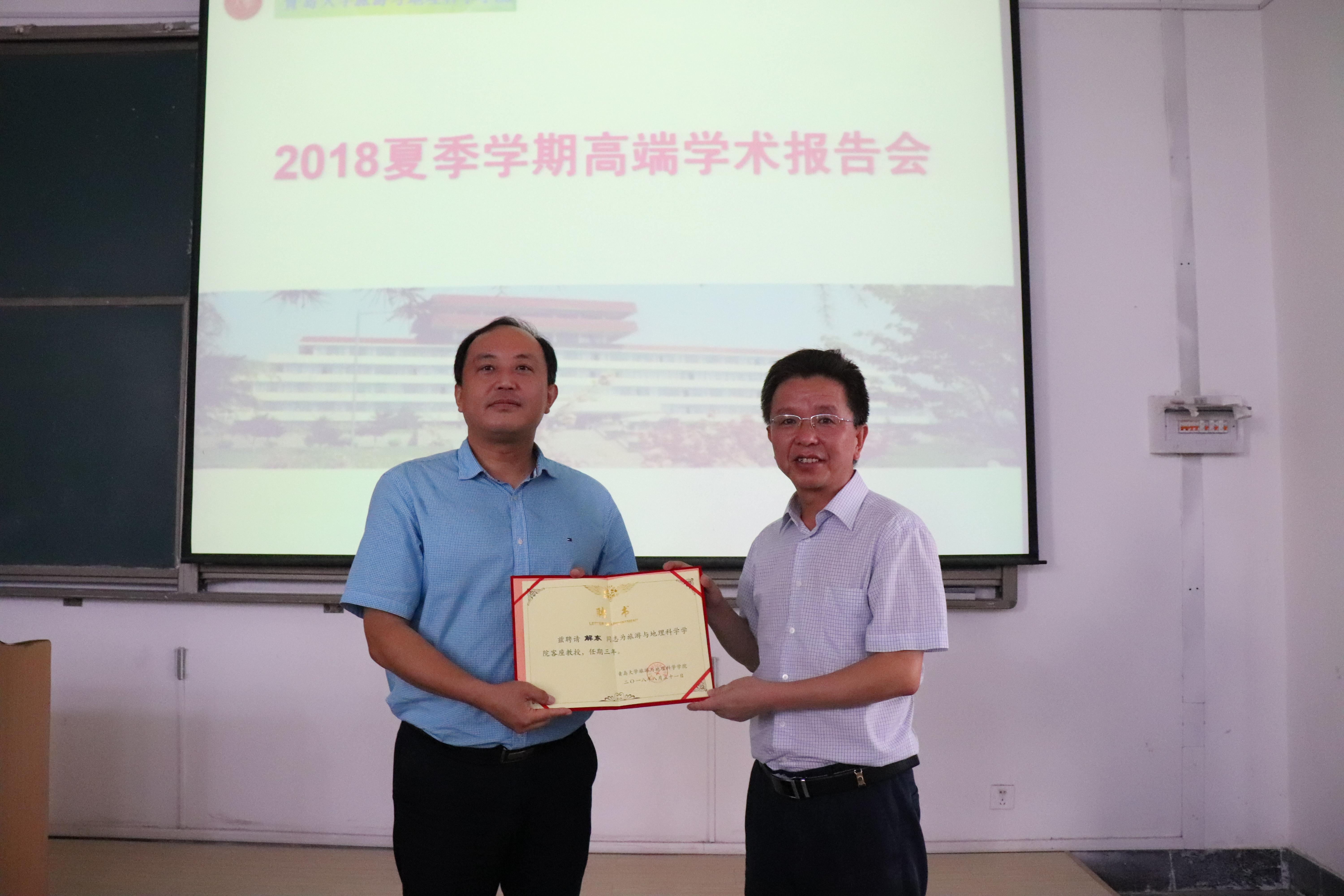 在报告开始之前,马波院长向解东主任颁发聘书,特聘解东主任为旅游与地理科学学院客座教授。随后报告正式开始。解东主任从概念和现实意义这两个层面详细介绍了全域旅游的提出和演进,并且结合国家政策、从行政的角度阐述为什么要发展全域旅游。最后他还以临沂市为例,展示了全域旅游的发展成果。