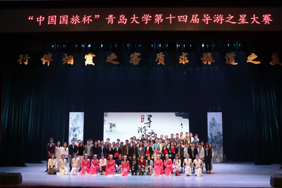 浮山校区剧院举行。青岛市相关旅游行业负责人、学院杰出校友、学院师生700余人参加了本次大赛。