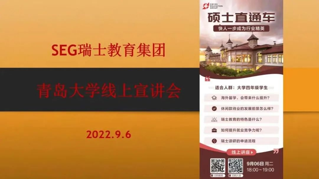 2022年9月6日,旅游与地理科学学院邀请SEG瑞士教育集团为2019级学子作出国留学宣讲。旅游与地理科学学院院长肖建红、副院长耿庆汇与同出席。