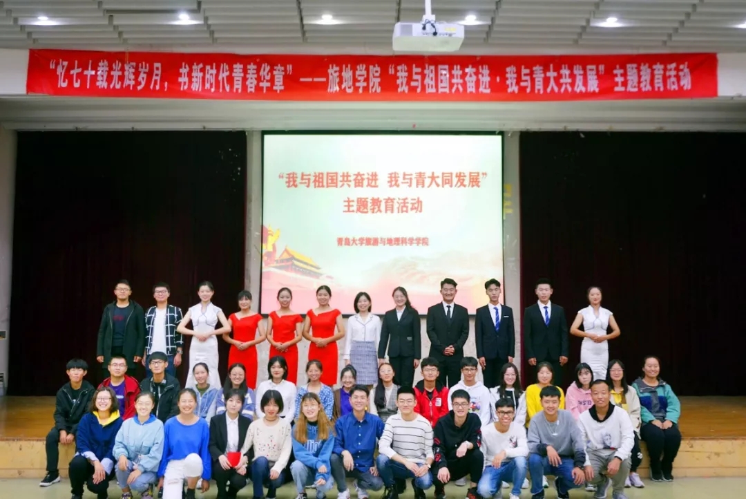 旅游与地理科学学院于金家岭校区图文中心四楼举行“我与祖国共奋进·我与青大同发展”主题教育活动。学院团委周昱宏老师、青礼先锋宣讲演示团成员、部分高年级团员青年代表以及2019级全体学生参加本次活动。