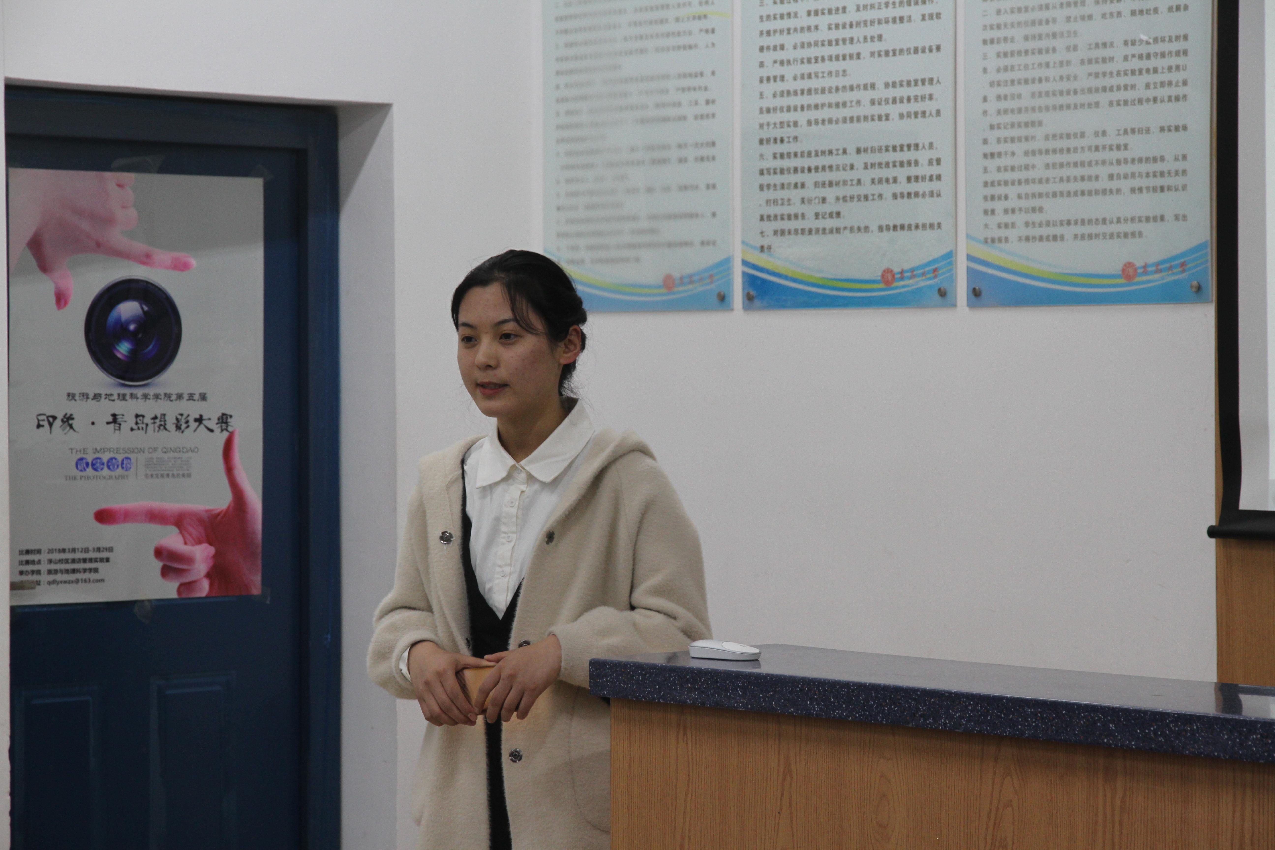 3月29日晚,由旅游与地理科学学院主办的第五届“印象·青岛”摄影比赛决赛于浮山校区酒店管理实验室举行。化学化工学院党政办主任李志国,旅游与地理科学学院教师于岩平、寇敏,葵司
