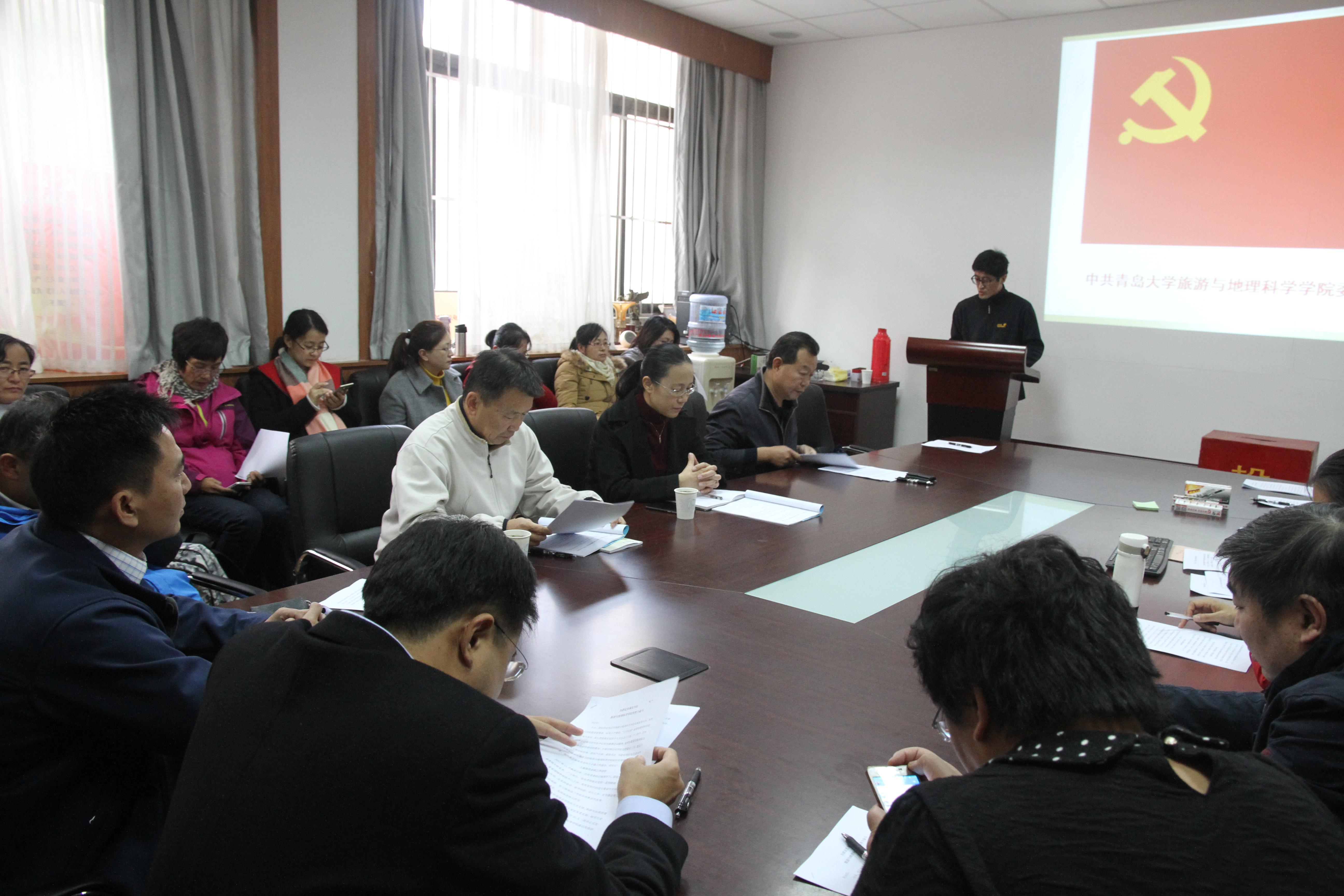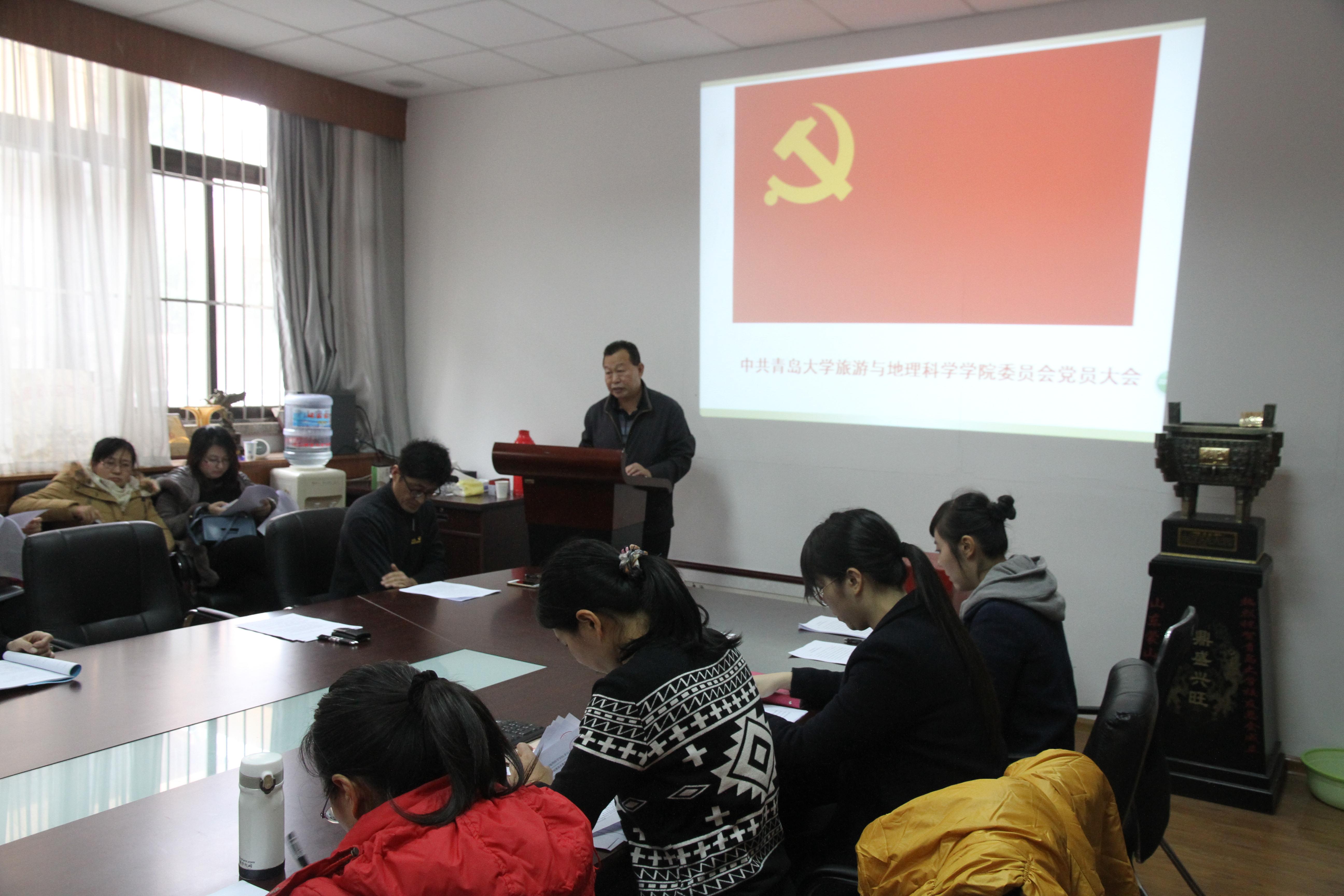 旅游与地理科学学院委员会召开党员大会,刘善东同志受上届委员会的委托,向大会作了工作报告。报告较全面、客观的总结了学院党委在过去几年的工作,科学制定了今后工作的目标和任务。大会表决通过了委员会工作报告。会议要求全院党员以邓小平理论、“三个代表”重要思想、科学发展观为指导,深入学习贯彻习近平总书记系列重要讲话精神和十八大及十八届三中、四中、五中、六中全会精神,紧密团结在以习近平同志为核心的党中央周围,努力提高党组织的吸引力、凝聚力和战斗力。在校院党委的正确领导下,为建设国际知名高水平大学和建设充满活力的旅游与地理科学学院而努力奋斗!
