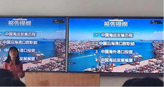 王伟教授通过大量史据对中国海运的发展与展望进行分析。本次讲座分为四部分:中国海运发展历程、中国沿海港口群职能、中国海外港口投资和中国海运发展展望。王教授首先以历史时间为线索展开对中国海运的发展背景和兴衰更替的详细阐述,与此同时,从专业的角度分别对古代天然港口和现代港口的形成条件作出分析,引导同学们对两者的区别有所理解。此外,王教授以我国主要的港口群为例,介绍了当下中国海运发展的现状和当前背景下我国沿海港口所具有的职能。为保障油气安全,我国通过对海外港口的投资建设来缓解海运壁垒,王教授也以我国对外投资的六个主要港口为例,更详细地阐述海外港口在我国海运发展中占据的重要地位。最后,教授以当下国家对海运发展的战略为基础,对我国海运发展做出宏伟展望,激励同学们的热情。