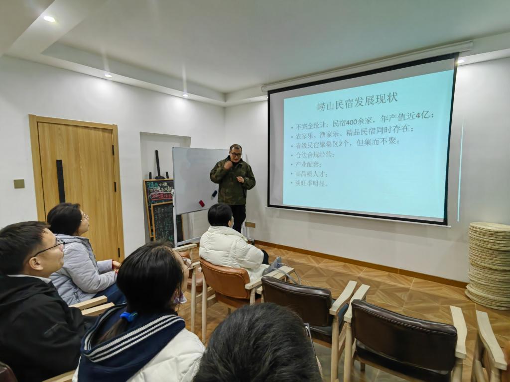 崂山区“沙子口·山海仙居旅游民宿集聚区”位于崂山南麓。这里山、海、城和谐相融,岛、滩、湾和美相生。当地依托得天独厚的自然禀赋,以山清水秀的原生态资源作为乡村民宿的基底,打造“好看”“好玩”“吃住娱乐休闲一体化”的乡村民宿旅游产业,点燃乡村振兴新引擎。同学们通过本次移动课堂,获得了有关崂山区民宿业发展的第一手鲜活资料,提高了对新时期青岛乡村旅游高质量发展形势的深刻认识,对旅游产业经济相关理论知识有了更深刻的领悟。葵司