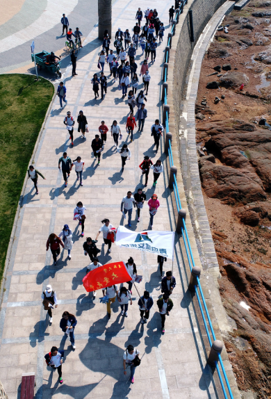 来到起点处,由我们的姜书记和李书记一起冲开了起跑线,象征着咱们健步行的正式开始。我们本次健步行的活动路线是从五四广场出发,途径第三海水浴场,最后抵达终点站第二海水浴场。