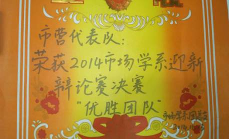 市场学系迎新辩论赛,陈元华的那句“舌战群儒,笑傲江湖,市一必胜”,成为经典,在那次辩论赛上,每位同学字字珠玑,敏捷的思维和快速的问答,带给大家最深刻的印象。最终,尹磊同学进入决赛并获得最佳辩手。