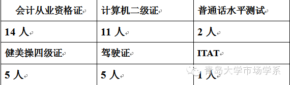 班级同学自学,通过了会计从业资格证,计算机二级证,普通话水平测试等考试。